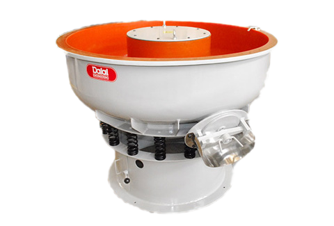 The machine has a steel bowl lined with rubber or polyurethane which is filled up with required media (either ceramic, plastic, maize etc. depending upon the finish required) and components. Eccentric weights are mounted on an extended shaft attached to a heavy duty motor to cause vibrations and create a spiral of the media and the components. Variations in vibration, achieved by varying weights and angles, and suitable combination of media enable machine to be used for different components.