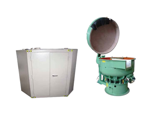 An Automated System with Vibratory Finishing Machine kept in a sound proof cabin integrated with Vibratory Dryer. The system is provided with auto loader, waste water recycling system, auto dosing unit and the whole process is controlled by PLC Control Panel.